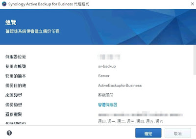 等候一段時間後,就會完成首次備份,至此 Synology Active Backup for Business 的實體伺服器備份作業設定與驗證都完成了。